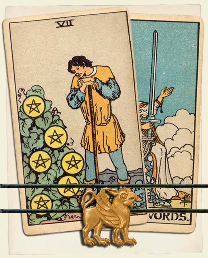 Seven of pentacles and Queen of swords combination provides an insight into an event in your future. It will come to pass from the combined effect of (1) GROWTH (effect of Seven of pentacles) and (2) PRINCIPLED (effect of Queen of swords). When this pair appears, you can expect to have to face some complexities and hard work in the near future. Perceptiveness and perseverance will be of significance during this time. If this combination appears during your reading, you are most likely being encouraged to proceed with a clear and open mind during this time.