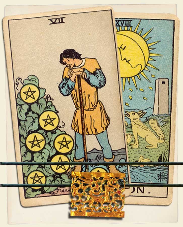 My dear friend, when it comes to the Seven of pentacles and The Moon in love and relationships, we must look at both the favorable and unfavorable aspects.