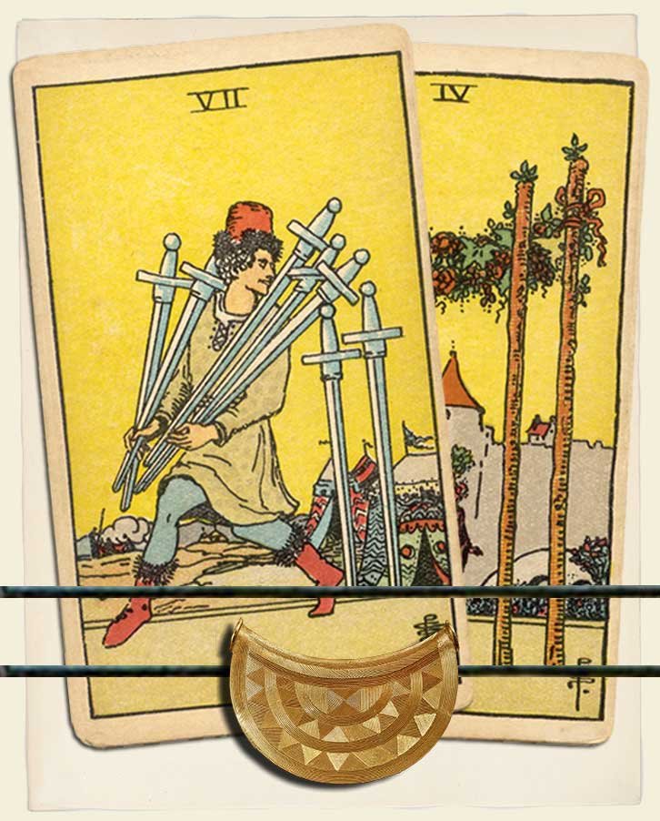 Seven of Swords and Four of Wands combo interpretation