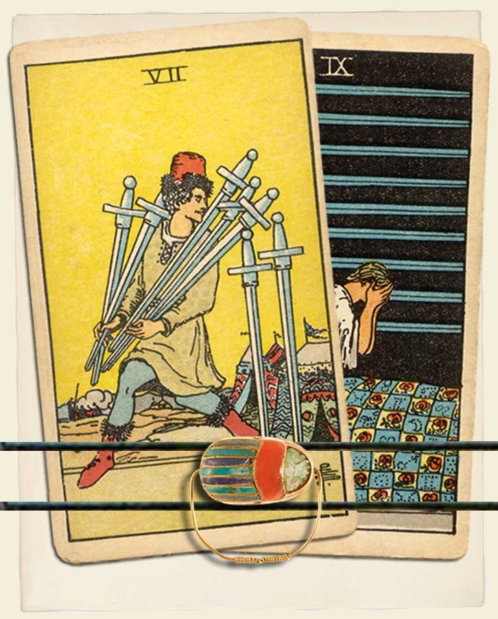 Oh, dear. The Seven of Swords and Nine of Swords combination is not a good one for love and relationships at all. It seems that there are two tarot influences at play here: strategy and despair. But don’t worry – your ability to cope with stress will help you get through any challenge you may face.