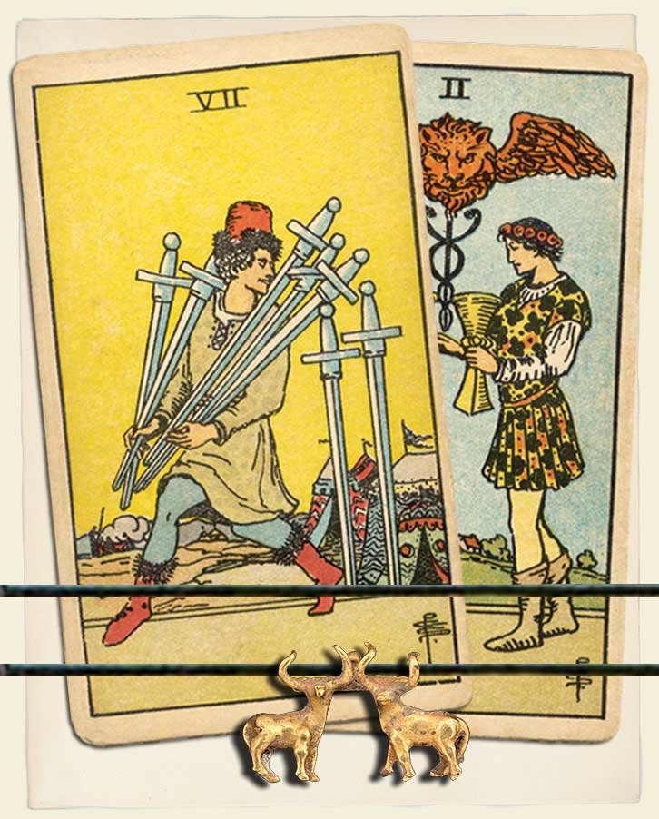 Beware backstabbers! These two tarot cards are warning signs for tough decisions ahead. Six of Swords and Seven of Swords combination reading with insights for love relationships.