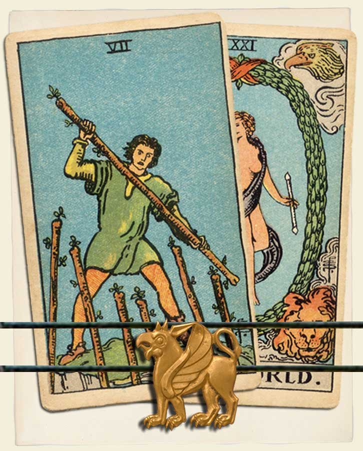 Seven of wands and The World combination gives you a better insight into your actual state and close future, which is influenced by the arcane forces of (1) STAMINA and (2) HARMONY. What’s the advice of this pair? The Seven of wands represents having to protect and defend what you’ve worked hard to achieve. Defending your territory from encroachment is tiring. Persevere, and you’ll be victorious. The World card represents completion. It indicates that a major cycle in your life is coming to a close. You’ve learned important lessons and are integrating them into your life. Hold on a little bit longer, and you will find balance and harmony.