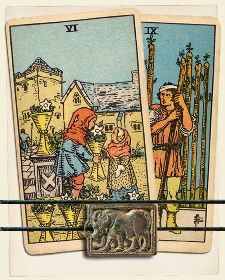 Six of cups and Nine of wands tarot combination gives a glimpse into your medium-term future, which is directed by the guiding influences of (A) comfort and (B) boundaries (as per influence of Nine of wands). What’s the advice of this pair? The Six indicates that you are in an emotionally secure place. You may feel as if you’ve never felt better or even like things are going well for once. This can be a dangerous mindset to have, though. The presence of the Nine of wands indicates that there is something important you need to protect at all costs. Perhaps it is your reputation or perhaps it is more abstract than that, but whatever it is needs to be guarded fiercely from harm. Take care not to let up on the vigilance required here because otherwise, someone might take advantage.
