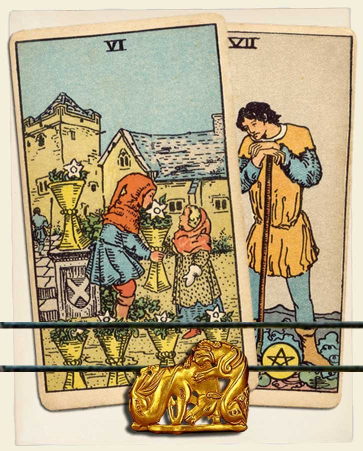 Six of cups and Seven of pentacles combo gives a glimpse into a major event in your future. It is influenced by the tarot forces of (I) SENTIMENTALITY and (II) LONG-TERM VIEW. In a nutshell what is great about you is that you respect your own feelings and emotions, and it is extremely important for you to be honest with yourself about your sentiments. Others may or may not read your sentimentality, but you know deep down that you are in a relationship with yourself and the relationship with yourself is one of the relationships that you will be with until your last day, focus for the long term and that long term view is what makes you beautiful.