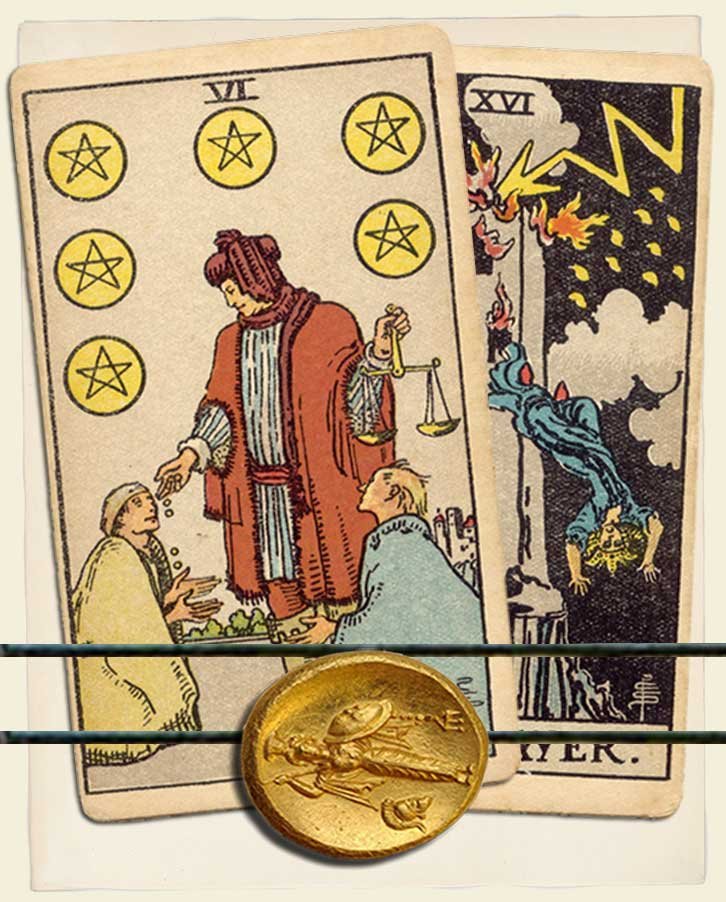 Six of Pentacles and The Tower combo interpretation