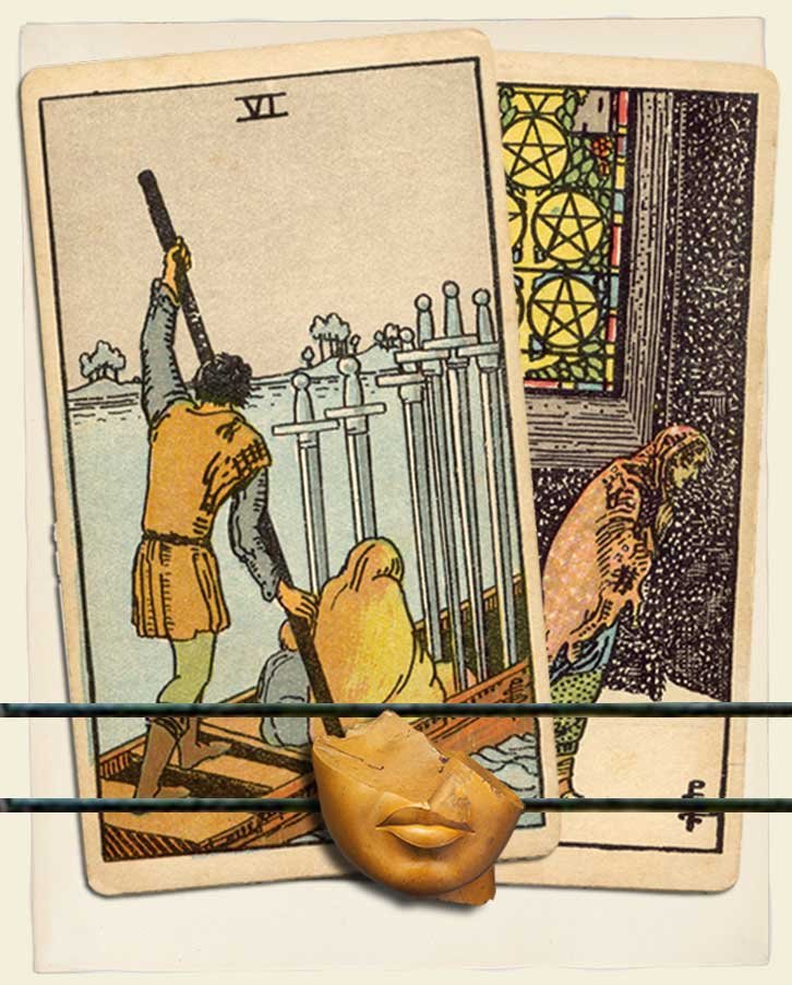 Six of swords and Five of pentacles combo indicates that two forces: 1) Moving On and 2) Isolation govern your life perception today. These days you’re blaming a break-up you’ve been through. You don’t understand how one has to leave, how one has to go while still, they are loving each other. After a while, you’ll decide that it’s the right thing for you. You will want to be alone for a long time, and you will think that you will never love again. Don’t lose hope, it’s not too late for anything yet.