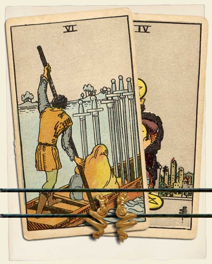 Six of Swords and Four of Pentacles combo interpretation