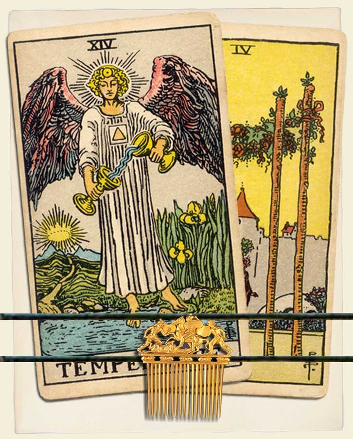 The Temperance and Four of Wands combination is a very positive sign for love and relationships. This combination suggests that calm and harmony will soon return to your life after facing challenges and hardships. The key to finding balance between your spiritual and material lives is crucial in achieving this calmness.