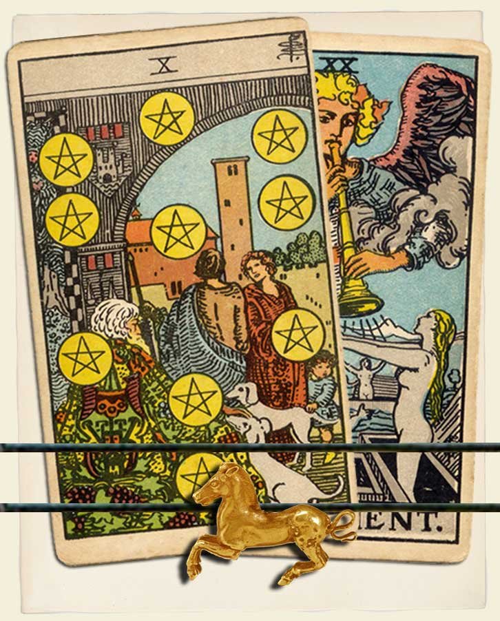 Ten of pentacles and Judgement combination gives a hint about a significant event in your future, which is influenced by the arcane forces of Family and Reckoning. In other words, it means you dance to the beat of your own drum, and you are the person who controls that beat. You previously saw family as those who should stick together through thick and thin, but as they didn’t, and you got hurt, you are now happy to bid farewell and carry on as you are. Sometimes, we have to do difficult things in order to remain sane and healthy.
