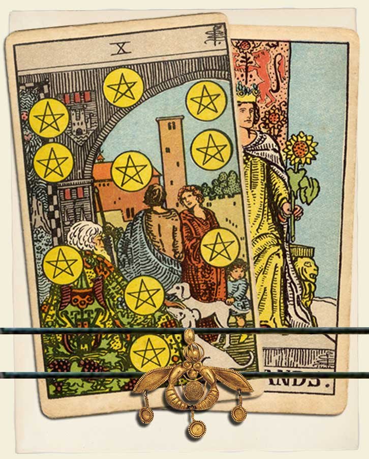 Well, let me tell you folks, the Ten of Pentacles and Queen of Wands combination is a darn good sign for love and relationships. It means that two powerful forces – roots and self-confidence – are influencing you today.