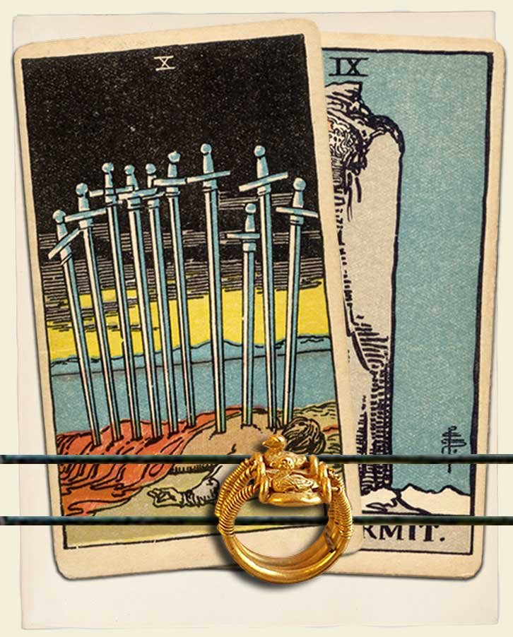 Ten of swords and The Hermit together means that two arcane forces: I) Painful Endings (Ten of swords) and II) Withdrawal (The Hermit) are jointly affecting you today. What’s the advice of this pair? The Ten of swords represents a painful ending in which there is no way out. This card indicates that something very difficult will have to be closed off for you to move forward. The presence of the Hermit indicates that this isn’t just about moving on from a bad situation, but also about withdrawing into yourself so you can heal. You may need to take some time off work or school as well as spend more time alone with your thoughts and feelings, because they won’t stop hurting if left unchecked.