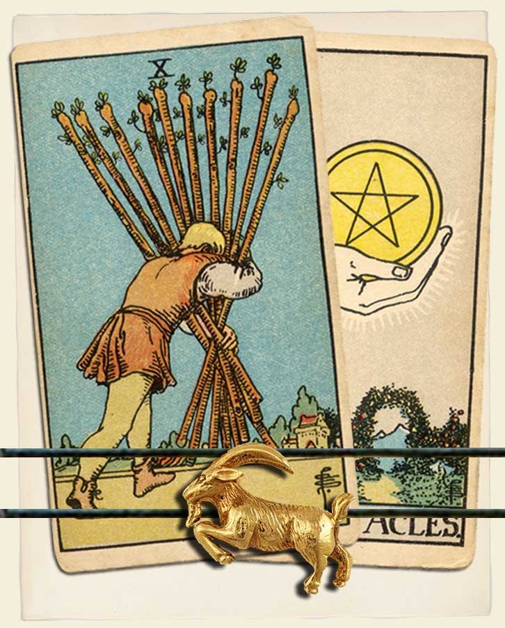 But don’t lose all hope just yet! The Ace of pentacles offers some positive insight into your medium-term future when combined with the Ten Of Wands card. It is directed by the guiding influences of Burden (Ten Of Wands) and Security (Ace Of Pentacles).