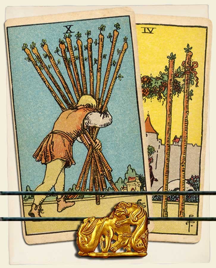 In the world of tarot, the Ten of Wands and Four of Wands combination is considered a neutral sign for love and relationships. However, when we take a closer look at each card’s interpretation, it becomes clear that they carry very different messages.