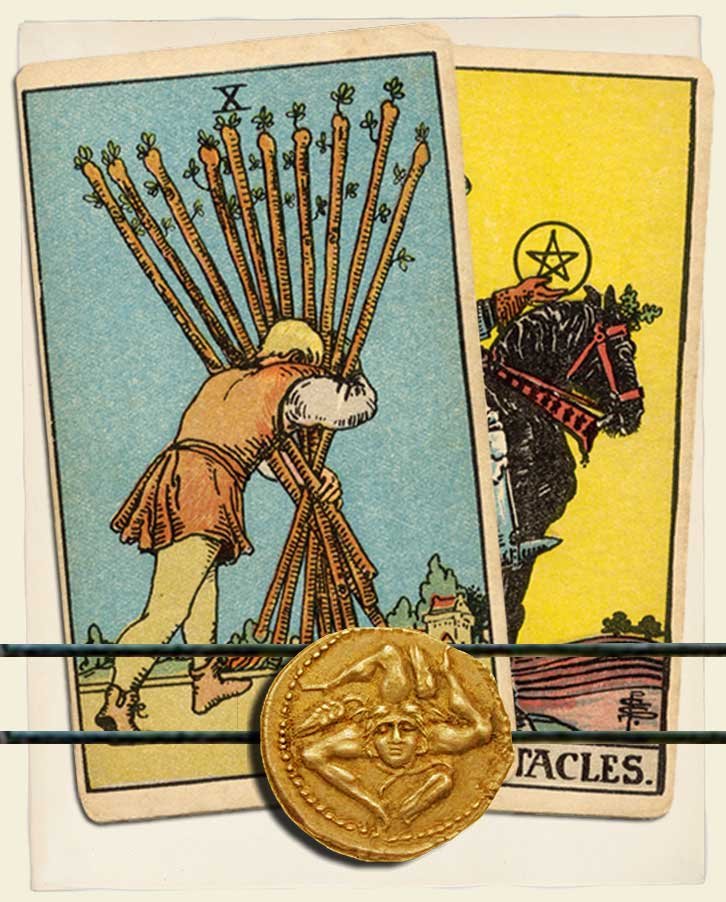Ten of Wands and Knight of Pentacles combo interpretation