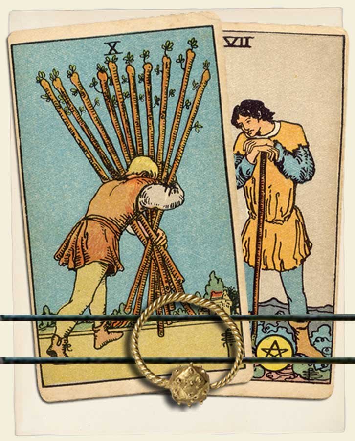 Oh my, love and relationships can be quite tricky business. When it comes to the Ten of Wands and Seven of Pentacles tarot combination, we’re looking at some mystic forces exerting their influence on your choices in life. The Ten of Wands brings a sense of burden while the Seven of Pentacles represents growth.