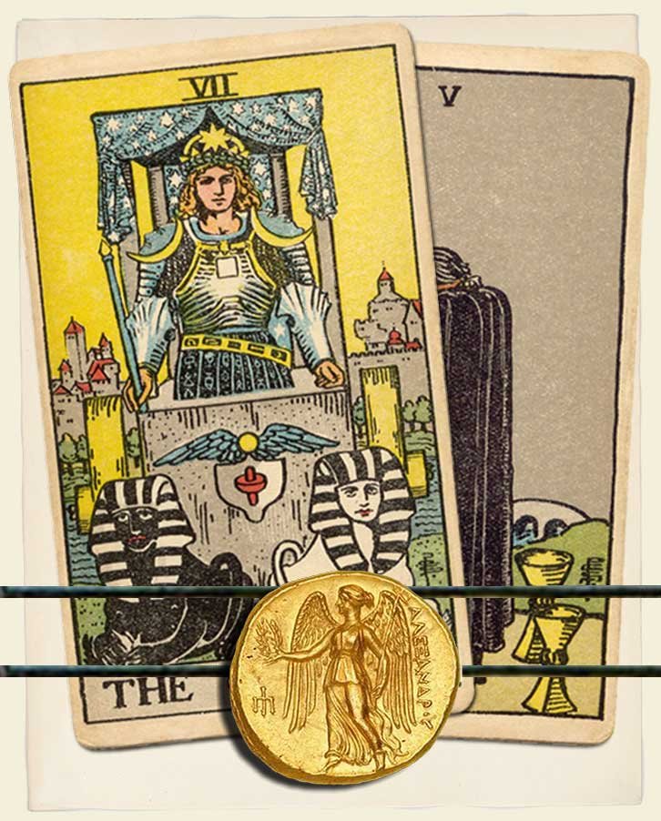 The Chariot clarified by Five of cups gives you intuition about a major event in your future. It is influenced by the arcane forces of (1) success and (2) mourning. This means that you are going through a situation which turned out to be different than what you expected. You committed some mistakes and now, if you want to reach success and abundance, you have to learn from them and not live in the past. Moving forward will lead you to overcome challenges and make you stronger, in order to achieve your goals. The future has a lot of new opportunities to offer, be sure to be opened to receive them.