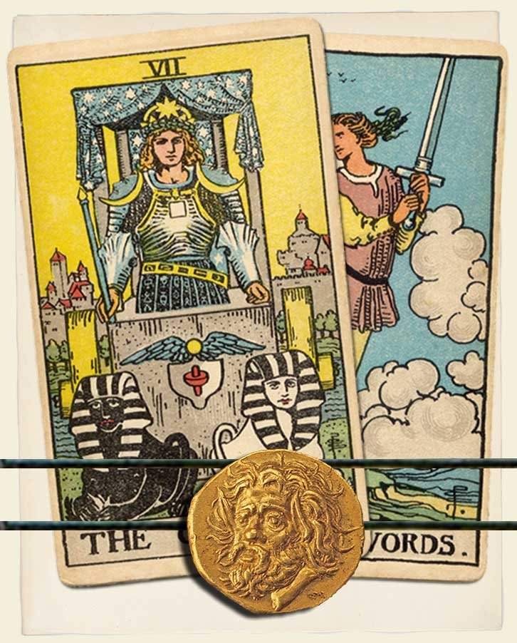 The Chariot and Page of swords combination means that two mystic forces: 1) CONTROL and 2) NEW IDEAS guide your decisions today. You will be put in a position where you are in charge, and this is a moment you have been waiting for. Shine through with you new ideas, make sure they help solving the problem at hand, but do not let someone else take control of the spotlight. These moments don’t come around often, and you must find your voice to make sure you can be heard above all the rest of the noise.