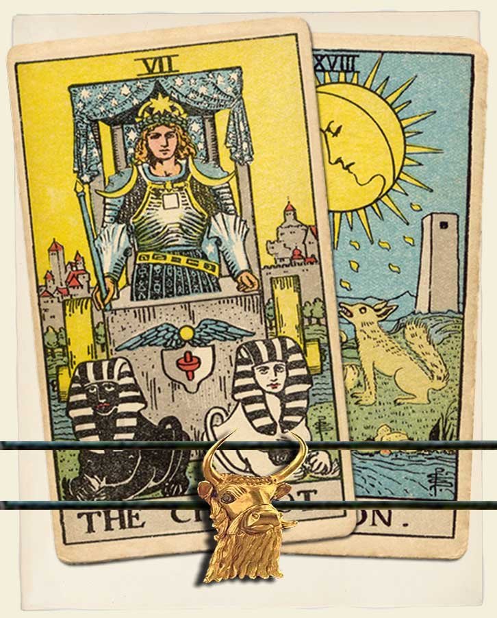 The Chariot and The Moon combination signals that two arcane effects: 1) Ambition and 2) Intuition currently guide your decisions. When you are at work today, be sure to look at the job listings. One of those listings will seem to leap out at you. Pay heed to this listing. Although you may not see this as a fit for your future employment goals, try to see how that job could be a stepping stone for your future. Go ahead and apply, and allow your future to unfold.