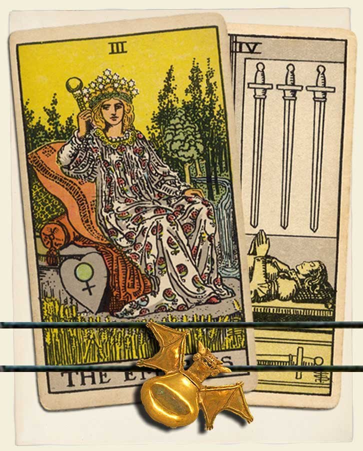 The Empress and Four of swords combination means that arcane tarot forces: 1) CREATIVITY and 2) REST are influencing you at this moment. This combo indicates that you are in a moment of impasse and in order to regain your creativity and expression back, you need a moment to rest. Take a breather, re-organize and re-evaluate your priorities. You have to nurture yourself, be at peace with your own mind and soul, before giving to others. After a well-deserved pause, you will have even more creativity and passion for your job, your relationships, your viewpoints on life. But don‘t forget that, first of all, you have to take care of yourself, and then, your refound energy will blossom.