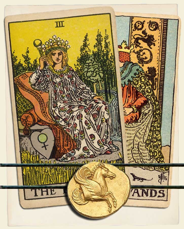 The Empress and King of wands combination gives a clearer perception about your medium-term future, which will come to pass from the combined effect of (A) FEMININITY (effect of The Empress) and (B) NATURAL-BORN LEADER (effect of King of wands). You are in control here. It is time to take command. There is much work to be done, and you know how it should be done. This doesn‘t mean that everything will run smoothly or that you won‘t have any problems along the way, but at least now you can see them coming so you can prepare for solutions instead of just dealing with problems as they arise. Still… there is something special about being in charge when the king himself has brought this gift to your table. Enjoy.