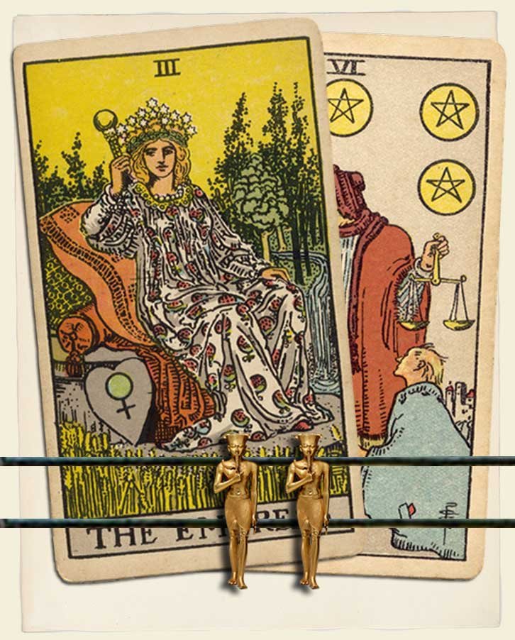 The Empress and Six of pentacles tarot combination gives an insight into a significant event in your future, which will come to pass from the combined effect of (A) fertility (effect of The Empress) and (B) charity (effect of Six of pentacles). In other words, it means that you will have the opportunity to help another in the coming weeks. True, you’ve come upon lean times yourself lately– but don’t become miserly. There are many ways to replenish your inner resources, after all. So why not try it? Attend to the needs of another– you’d surprised how nourished you’ll be.