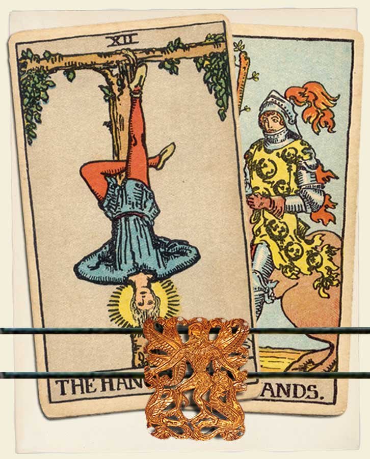 The Hanged Man and Knight of wands tarot combination is a sign that two tarot effects: A) Surrender (The Hanged Man effect) and B) Inspired Action (Knight of wands) are influencing you at this moment. There is great power in a person who can admit when it has become too much and chooses to take a knee. By surrendering to whatever is pushing up against you right now you will inevitably inspire others to do the same. Watch as many people who trust and admire you fall by your side in an act of selfless surrender. You will come to find the surrender is a small price to pay for the success of helping others live authentically.