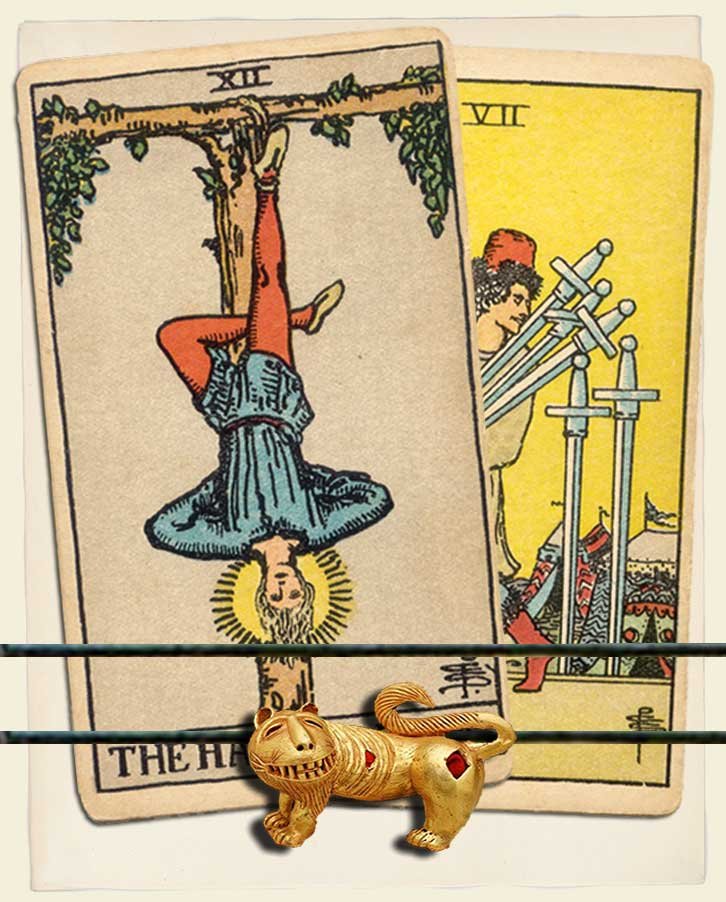 My dear child, the combination of The Hanged Man and Seven of Swords in matters of love is a troubling sign. It suggests that you may feel trapped in a situation where nothing seems to be working out, and you are at your wit’s end. You may have been hurt in the past, and this has made it difficult for you to move on.