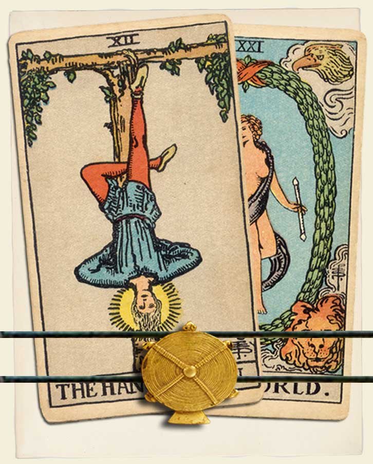 The Hanged Man and The World combo interpretation