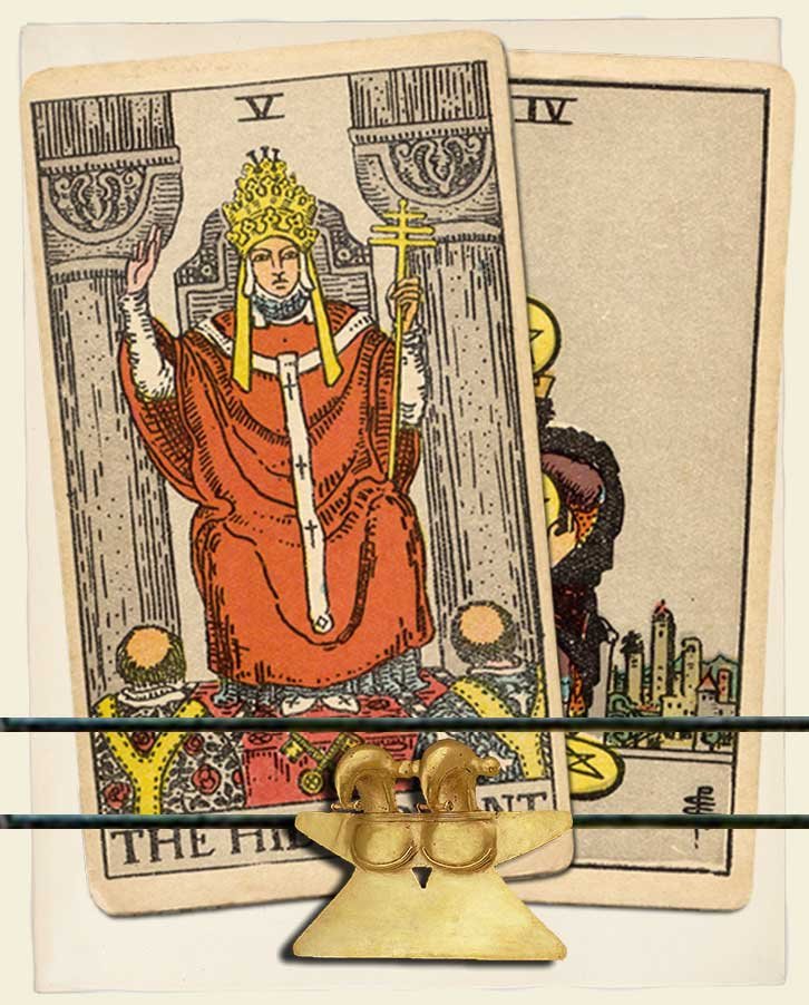 Yo, so if you get The Hierophant and Four of Pentacles combo in your love reading, it means that you’re making decisions based on what everyone else thinks is right and trying to save money instead of following your heart. You gotta think about what you’ve already done and where you wanna go from here.