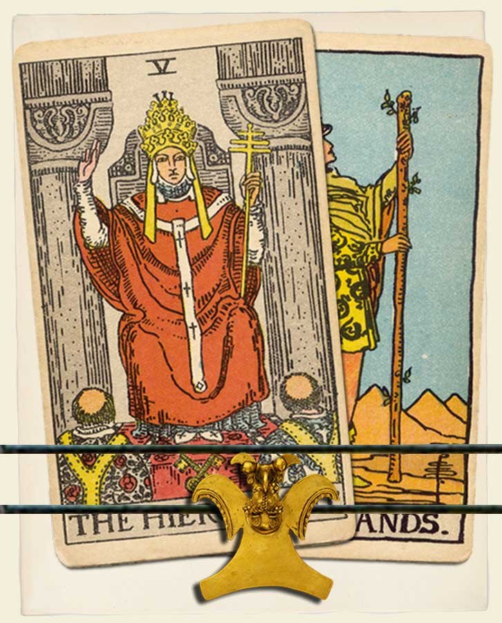 The Hierophant and Page of wands combination gives you a peek at an event in your future. It will come to pass from the combined effect of (1) Institutions (effect of The Hierophant) and (2) Fresh Ideas (effect of Page of wands). In other words, it means that you may be, or choose to be, communicating with a higher power about what you need to do next. The situation you are facing may feel serious, or you may wish that it was more serious than it is, but you are looking to an advisor for advice or maybe even comfort. The page here seems to show that someone is not taking a very serious situation seriously. If you are seeking advice or comfort, listen to that advice, and if you are not, consider counseling of some sort.
