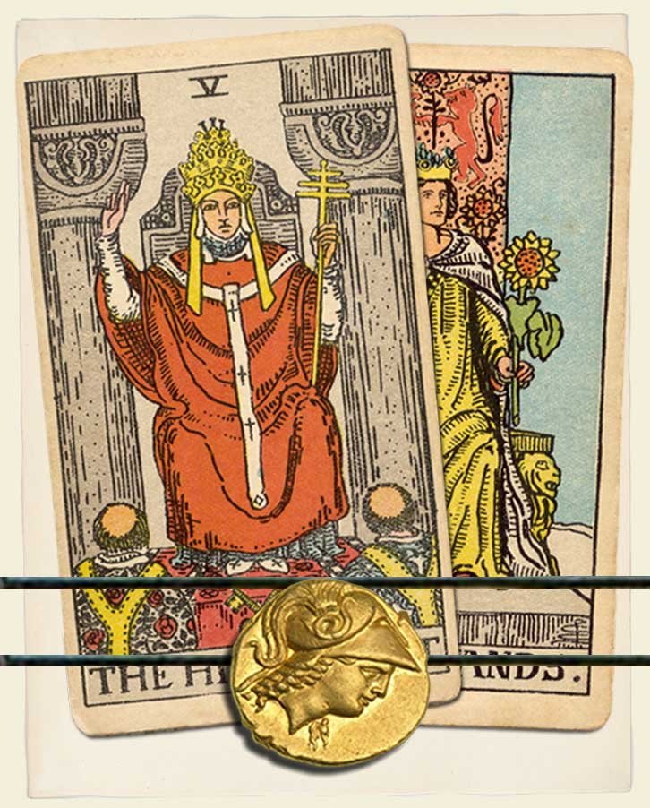 Hey, Combotarot Nation! Today, we’re talking about the meaning of The Hierophant and Queen of Wands for love and relationships. This combination is actually considered a very good sign!