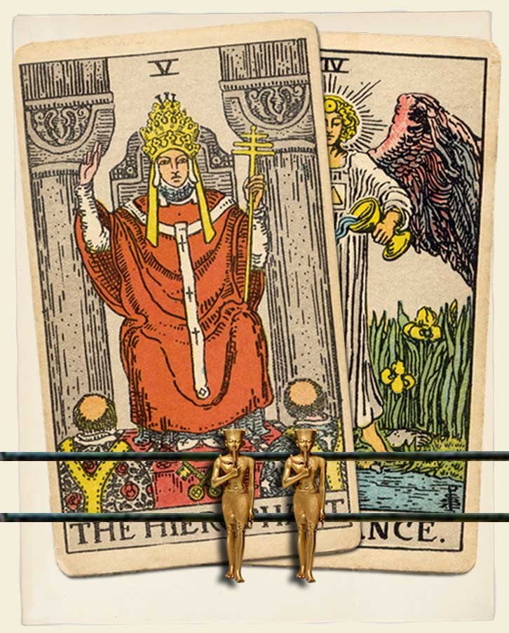 The Hierophant and Temperance tarot combination gives a glimpse into your near future, which is influenced by the tarot forces of (I) Spiritual Wisdom and (II) Balance. In other words, it means that you have been doing well in your social life, financial life, love life, your career and other aspects of your life, but it seems like something is missing. You need to channel into your spiritual life. Often some people forget about their spiritual well-being. This imbalances our happiness when we don’t have anything to believe in and when we are not hopeful about anything. Your card is telling you that you need to give your spiritual wisdom some love and listen to it, and you might find the balance that you have been searching for.