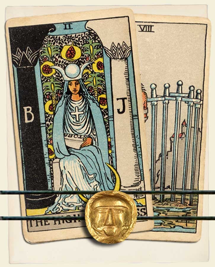 The High Priestess and Eight of swords combination is a sign that two arcane dynamics: 1) The Subconscious Mind (The High Priestess) and 2) Paralyzed (Eight of swords) govern your life decisions today. How to interpret this in practice? This combination is a sign of two mysterious dynamics. You realize you are on a path you don’t want to be on. What’s keeping you here? Question yourself. You feel like you have no other choice. The solutions may not seem easy, but they are there. You need to take a clear step. As you take a clear step, you will see your life moving forward in a clearer way. This is how the confusion in your life will end.