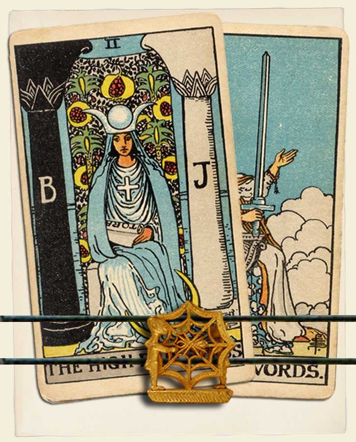 The High Priestess and Queen of swords tarot combination provides an insight into your actual state and close future, which will come to pass from the combined effect of (1) HIGHER POWER (effect of The High Priestess) and (2) HONEST (effect of Queen of swords). Most tarot readers would consider this a sign that your integrity will soon be tested. You’ve been walking the narrow path of truth for so long, you’ve started to become tempted. And who wouldn’t be? It’s a long and painful road. Still, these cards implore you, try and keep your eyes on the distant mountain. Trust that you will eventually reach its summit: the rest will take care of itself.