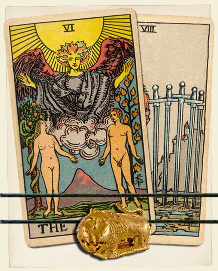 The Lovers and Eight of swords tarot combination gives a glimpse into your current state and immediate future. It will arise from the combined effect of: (I) Relationships (effect of The Lovers) and (II) Trapped (effect of Eight of swords). What’s the advice of this pair? You are in an important place in your life, but it is not without its challenges. The presence or absence of someone you care deeply about can create imbalance that may be difficult to notice at first. This card indicates that there is something wrong with how you relate to others, so make sure you address any issues before they become more serious problems. If possible, seek professional help to get things back on track.