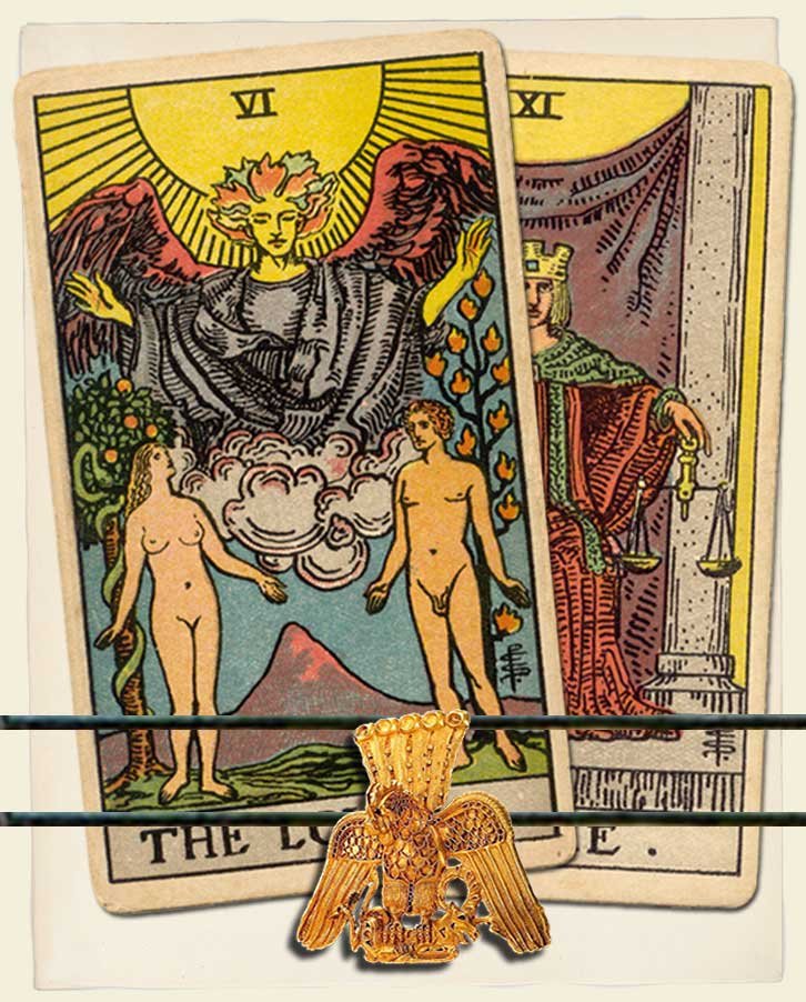 The Lovers and Justice combination gives you a better insight into a significant event in your future. It is influenced by the arcane tarot forces of (A) LOVE and (B) ACCOUNTABILITY. What does it mean in practice? This pair means the emotional bond with your partner is strong at this moment. It has to be, because soon the effects of past actions will be felt. There is a sort of karmic retribution on the horizon. Don‘t be too alarmed by this because your love will be strong enough to withstand the pressure.