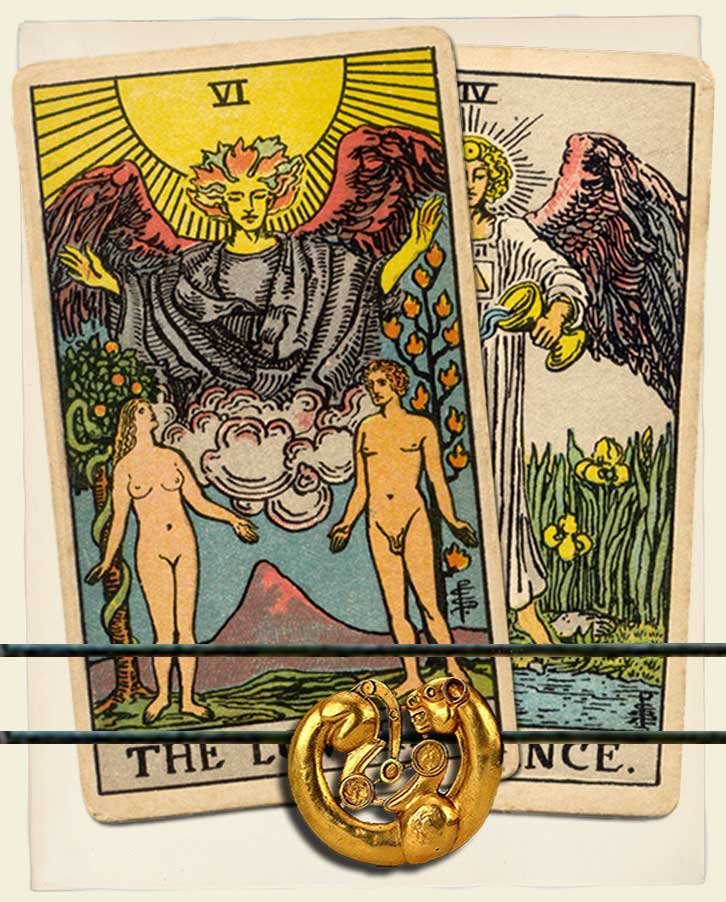 The Lovers and Temperance combination provides an insight into your current state and immediate future, which is influenced by the arcane tarot forces of (A) Unions and (B) Patience. In other words, it means that someone is either falling in or out of love currently. Patience will be of extreme importance when this union appears. All parties in the union are likely to find balance or a middle path when this combination appears. To navigate through this relationship you will have to practice patience to bring about this healthy change.