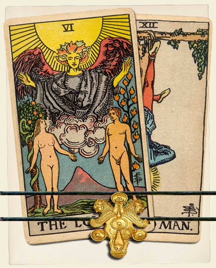 The Lovers and The Hanged Man combination is a sign that two mystic forces: 1) Choices and 2) New Perspectives are affecting you at this moment. In essence, you are like a blind woman seeing for the first time. To draw these two cards together is a sure sign that you are finally beginning to see things free from the influence of others. And look how much bigger the world is now! Where you go from here is a mystery—but a welcome one.