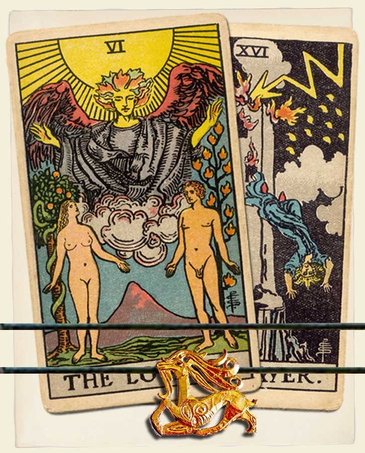 Yo dudes, so like if you’re pulling The Lovers and The Tower cards in your love reading, it’s kind of a mixed bag. Like on one hand, you got The Lovers which is totally rad for relationships. It’s all about that deep connection between two people becoming something bigger than themselves, ya know? So if your girl is wanting to get closer to you emotionally, this card says go for it bro.
