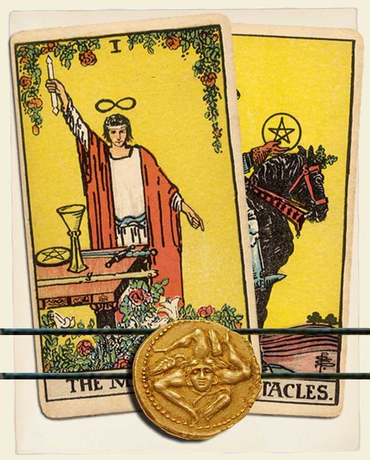 The Magician and Knight of pentacles cards together – what do they mean? The knight suggests a hard road ahead, but the magician gives you power enough to get through the hard times. Even though things may be difficult, keep going and you will be successful. Stick to your plan or alter it as needed to see things through to the finish. You know that you are strong and capable when you set your mind to it, so do not let any obstacles get in the way of your success. Deal with problems head-on and keep moving forward. Your goals are attainable even though it may take more effort right now.