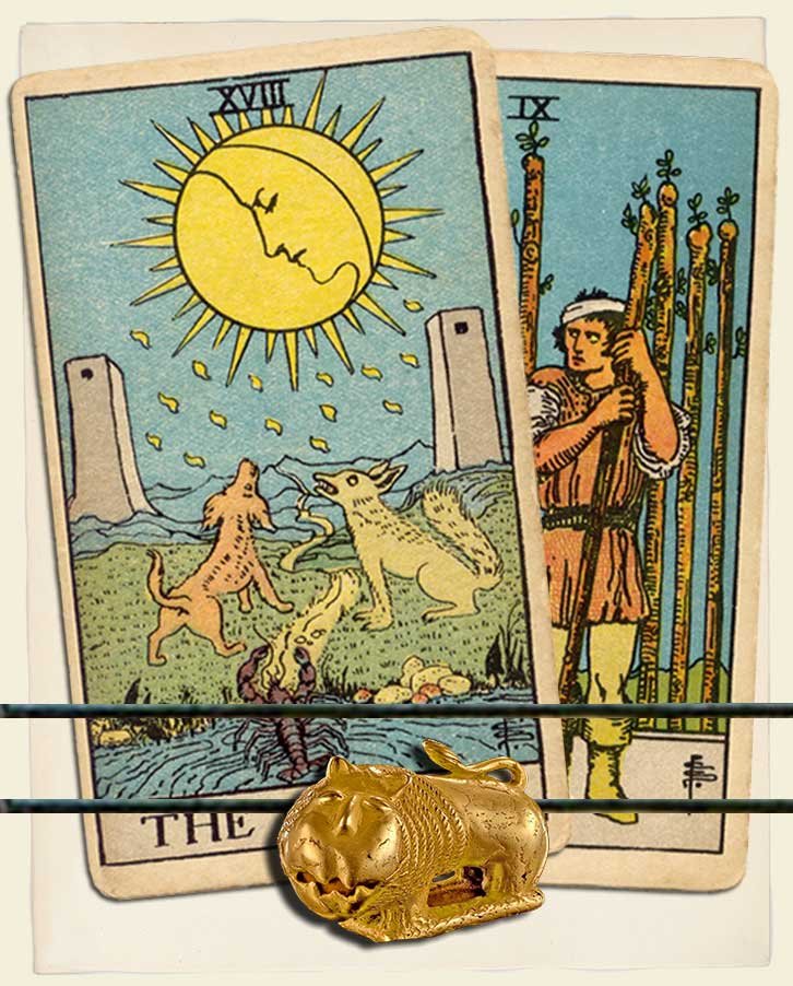 The Moon and Nine of wands combo provides an insight into your medium-term future, which is influenced by the arcane forces of intuition and resilience. What’s the advice of this pair? The Moon represents emotions that are raw and real. They may be painful to deal with, but they are authentic. If you have been holding on to feelings inside for a while now, it can feel like there is no way out. The Nine of wands indicates that you may be feeling exhausted from holding on too long. This card urges you to stop resisting your own truths and embrace them fully before it’s too late.