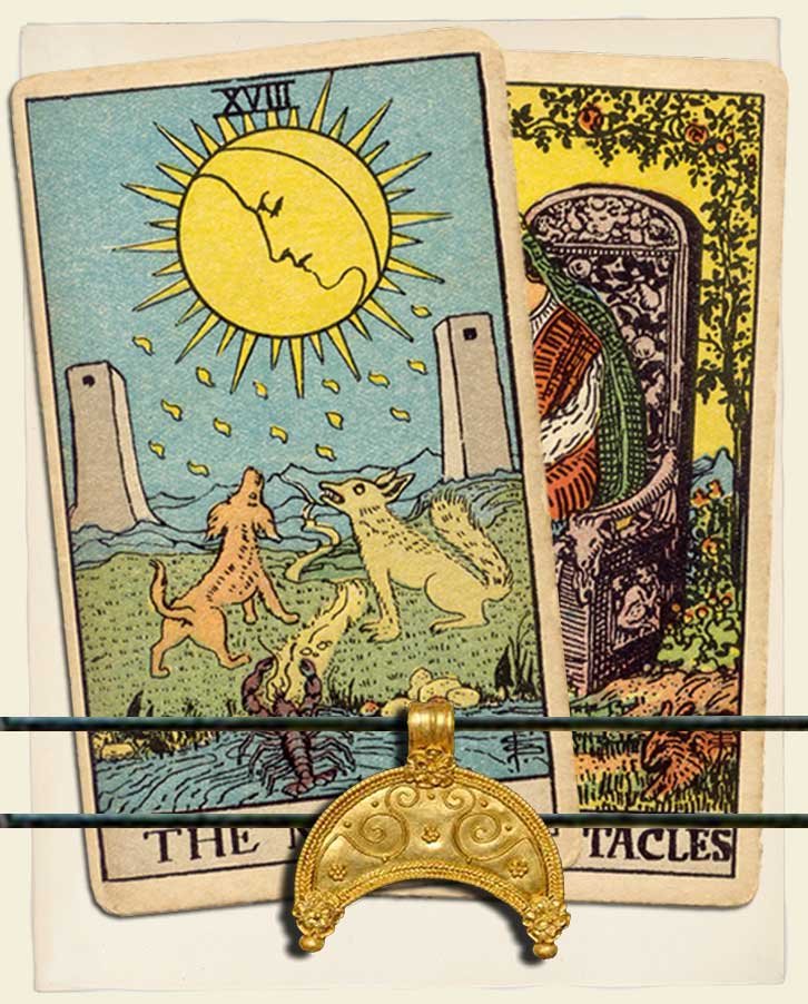 My dear child, the meaning of The Moon and Queen of pentacles for love and relationships is a complex one. On the one hand, this combination brings hints about a significant event in your future that is directed by the guiding influences of your subconscious and generosity. However, these good intentions are marred by deceit and attachment.
