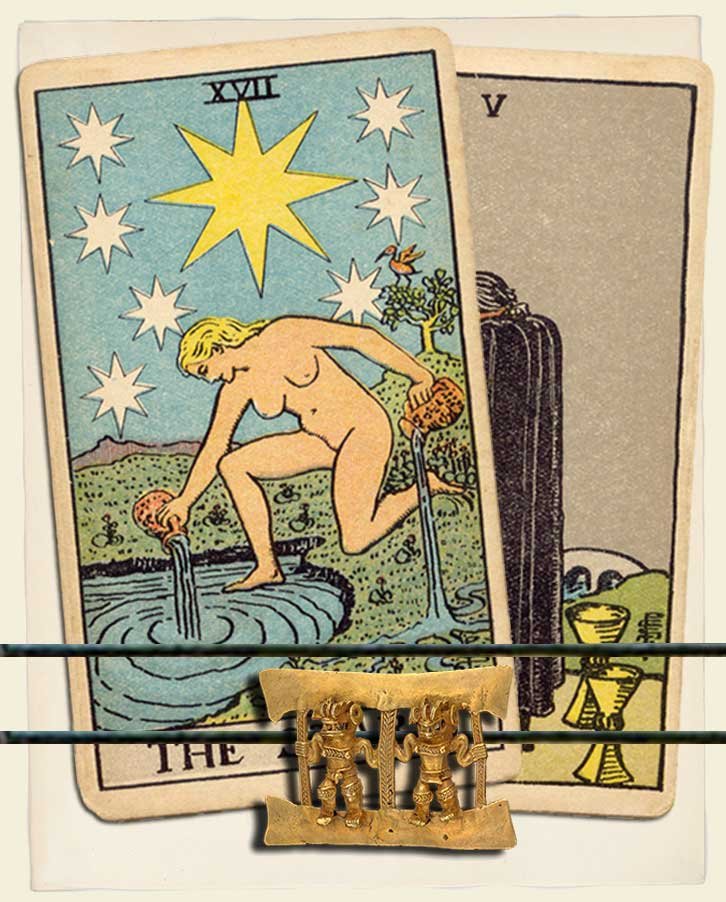 The Star and Five of cups together means that tarot influences: (1) Hope and (2) Regret are jointly affecting you today. You recognize that you treated somebody badly and have been carrying the shame of it around with you ever since. This combination serves as a gentle reminder that you cannot change the past. You deserve to forgive yourself for the mistakes that you have made and move on. It is time to mold the shame you are feeling into hope, every lesson learned is an opportunity to do better in the future. Trust that this experience has shaped you for the better and begin to journey forwards towards a brighter future.