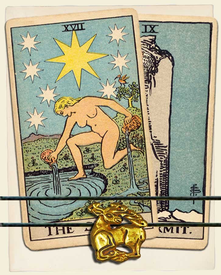 The Star clarified by The Hermit provides an insight into an event in your future. It is influenced by the tarot forces of (A) FAITH and (B) INNER GUIDANCE. In a nutshell, this reading implies you will need to show restraint. All of your actions recently have been manic, uncontrolled. You’re like a spinning top bouncing off whatever you come into contact with. Well, all these cards are suggesting is that you slow down. When your search becomes a little less desperate, you might actually start to find your way. Here’s a clue: turn your attention around 180 degrees.