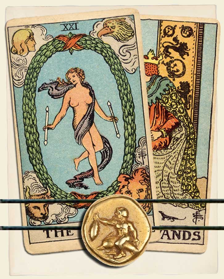 The World and King of wands tarot combination gives you a hint about your current state and immediate future, which is influenced by the forces of WHOLENESS and HONOUR. What’s the advice of this pair? The World represents an important new beginning that will create lasting change in your life. This energy can be very slow-moving but is also stable. It creates a feeling of being whole again after something has been broken or taken away from you. The King of wands indicates that this new beginning may have to do with a choice you make as to who you want to be, what kind of person you want to become, and how much work it will require for you to get there. Be sure this honorable decision reflects who you really are.