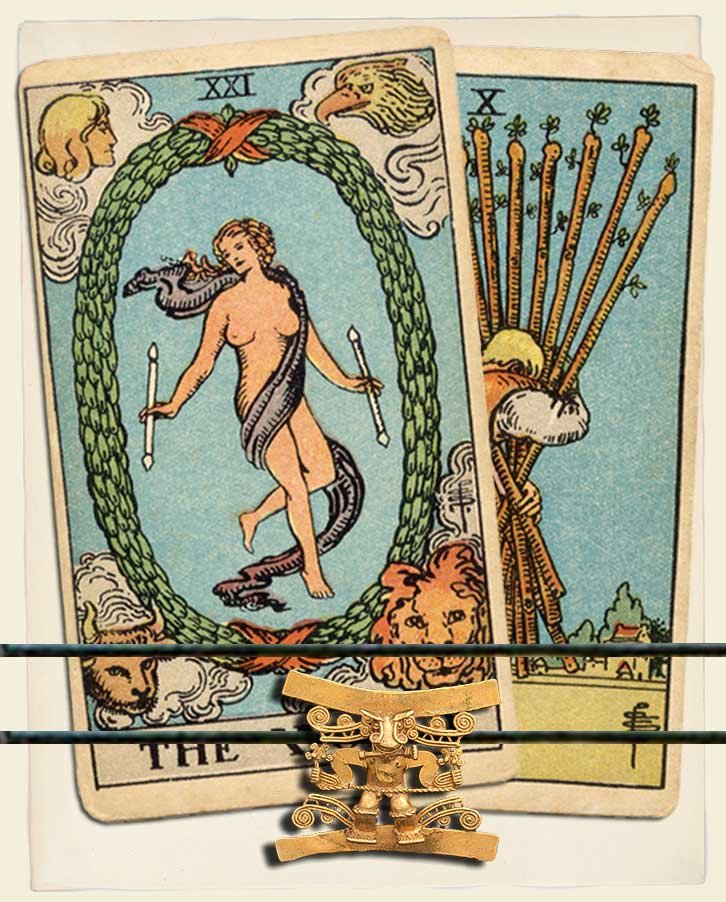 The World and Ten of Wands combo interpretation