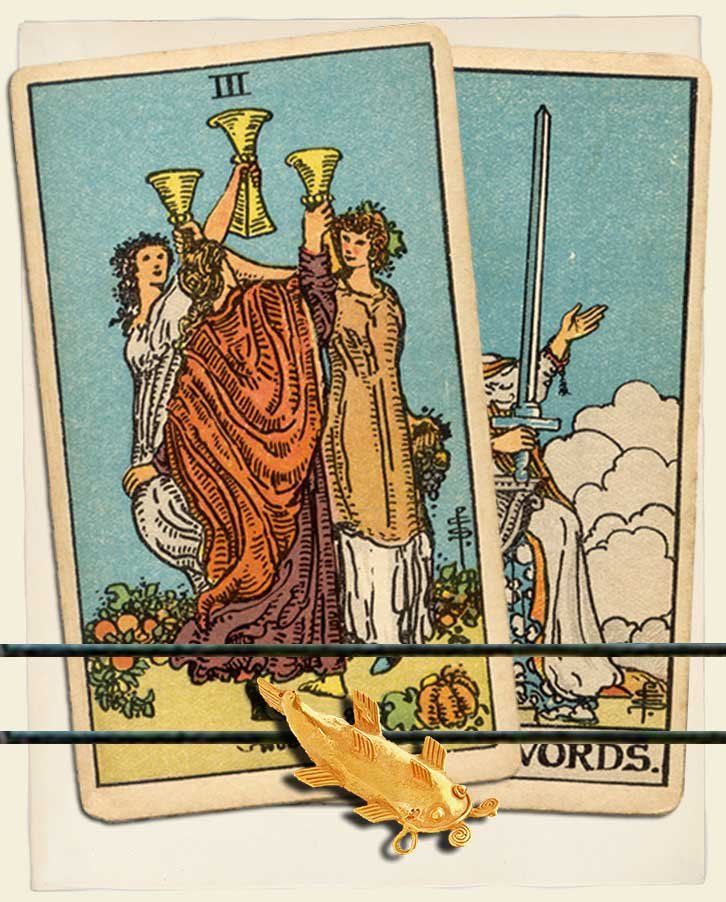 Three of cups and Queen of swords combination means that two tarot influences: 1) Creativity and 2) Unbiased Judgement currently guide your decisions. Most tarot readers would consider this a warning, but it is truly an encouragement. There are those who have doubted your ability as an artist, but they are about to change their tune. Your talents will now be evident to all who look at them, and you will soon be able to celebrate your new reputation and accolades. This is what you have been waiting for!