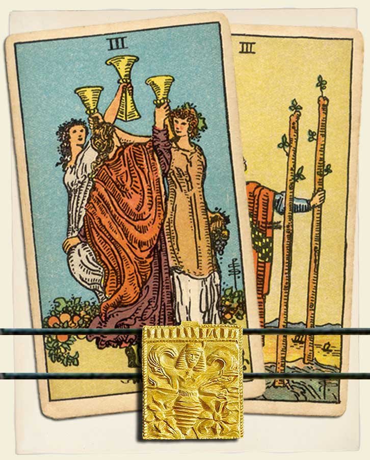 Three of Cups and Three of Wands combo interpretation