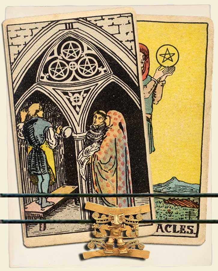 Three of pentacles and Page of pentacles tarot combination means that two mystic forces: 1) Collaboration and 2) Studious currently guide your decisions. What’s the advice of this pair? The Three of pentacles represents working in concert with others to build something lasting on a solid foundation. This is an energy that requires collaboration, so the presence here indicates you may be looking for collaborators or need to improve your ability to work well with others. The Page of pentacles is about learning by reading books and studying hard. It also carries a sense of intellectual curiosity – things like science, technology, engineering and math (STEM). If you feel stifled at work because you don’t know how to collaborate effectively but are afraid to ask questions out loud for fear they might seem stupid, now is the time to learn.