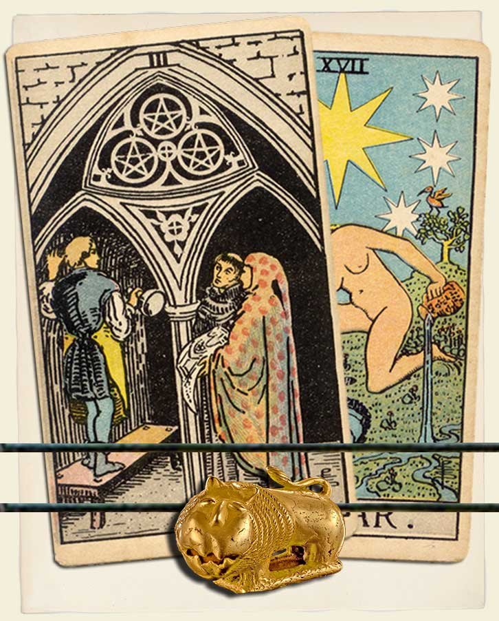 Three of pentacles and The Star combination indicates that tarot influences: 1) APPRENTICESHIP (from the side of Three of pentacles) and 2) FAITH (from the side of The Star) are influencing you at the moment. In other words, it means that you are making more progress than you think. They say the artist needs to paint a thousand pictures before she makes one image. It might seem like, one day, things suddenly ‘click’, but that’s a fantasy: slow, deliberate practice is the only way. These cards suggest that you have learnt far more than you think. Soon, you will see for yourself.